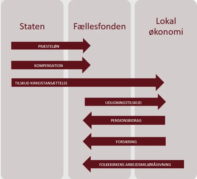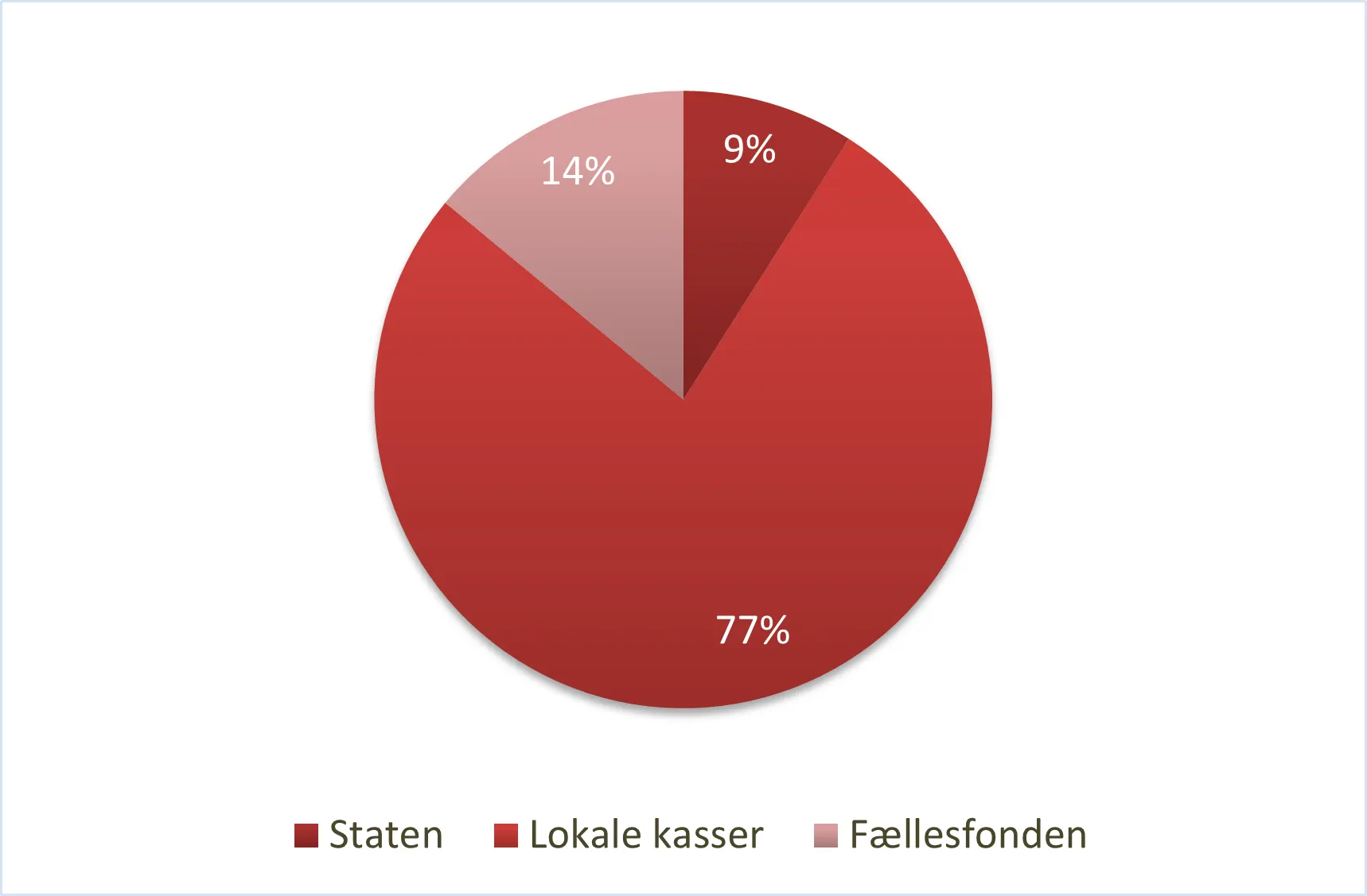 Nedenstående figur illustrerer, hvordan pengestrømmen flyder mellem staten, fællesfonden og de lokale kasser: