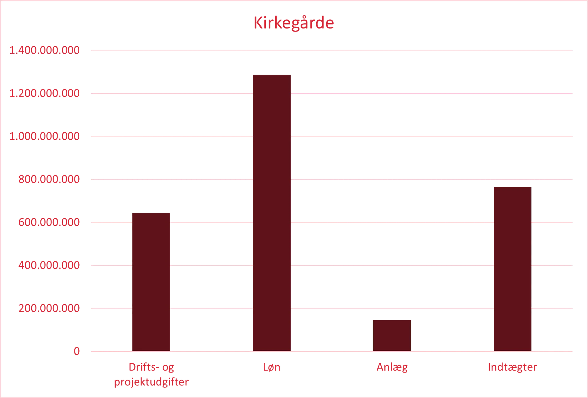Det er derfor ikke meningen, at kirkegårdens økonomi skal hvile i sig selv. Det resultatmæssige underskud vedrørende kirkegårdens økonomi skal også ses i lyset af udgifter, der falder udenfor de aktiviteter, der finansieres ved brugerbetaling.